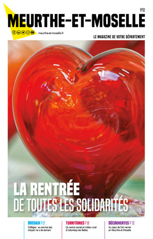 Focus sur l'action du Département en matière d'Autonomie, l'actualité des 6 territoires, l'année du verre en Meurthe-et-Moselle et les sites départementaux (château de Lunéville, Cité des paysages, Archives départementales et Médiathèque de Meurthe-et-Moselle), la dernière de couverture sur le Festival du Film italien de Villerupt.